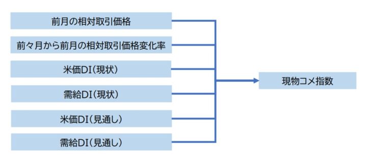 「現物コメ指数」は下記のデータをインプットの上、算出を行います。